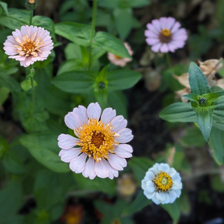 Zinnias. These seedlings don’t like root disturbance so direct sow. They can also do better if they are in a sheltered spot.